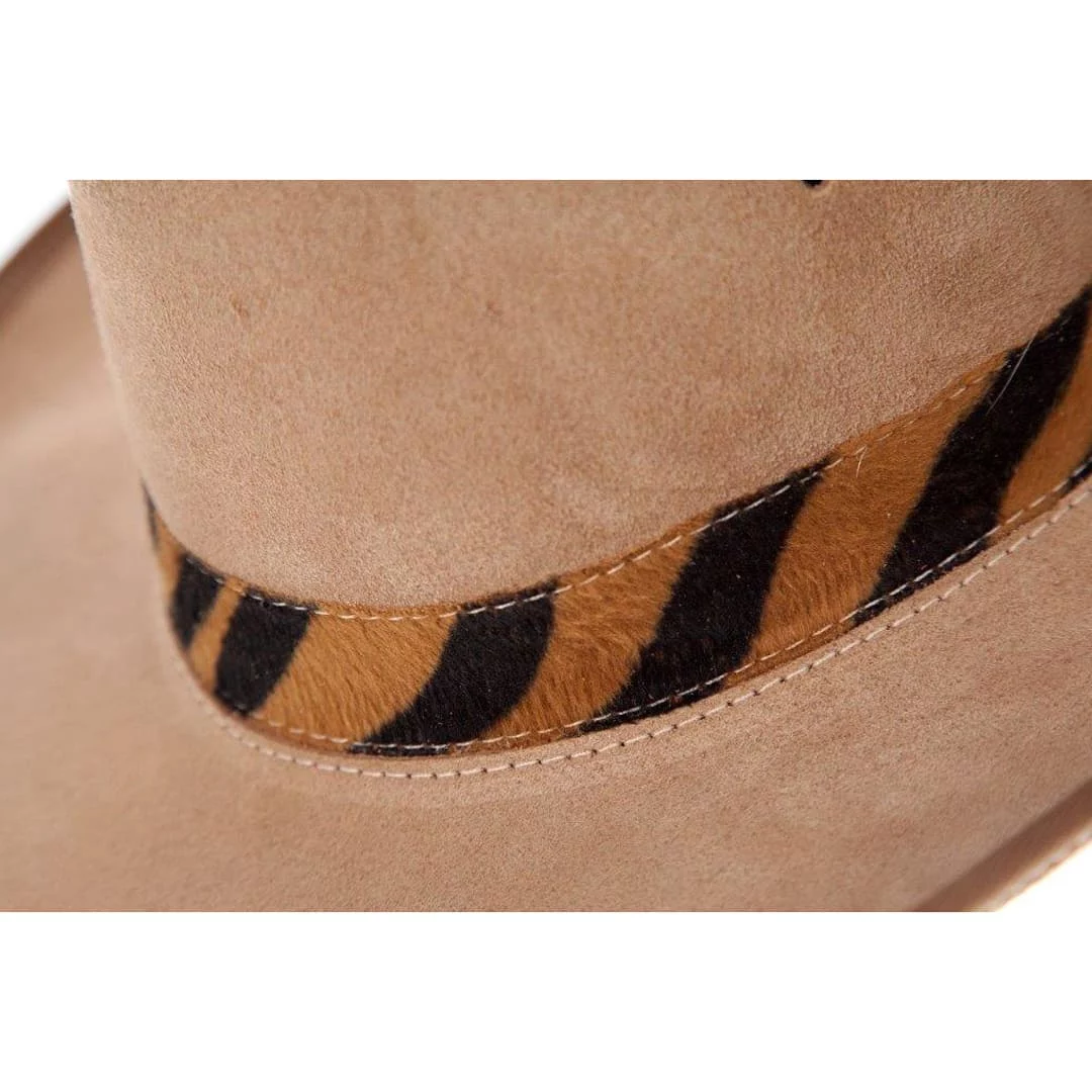 Suede Hat with Animal Material Trim – Sand