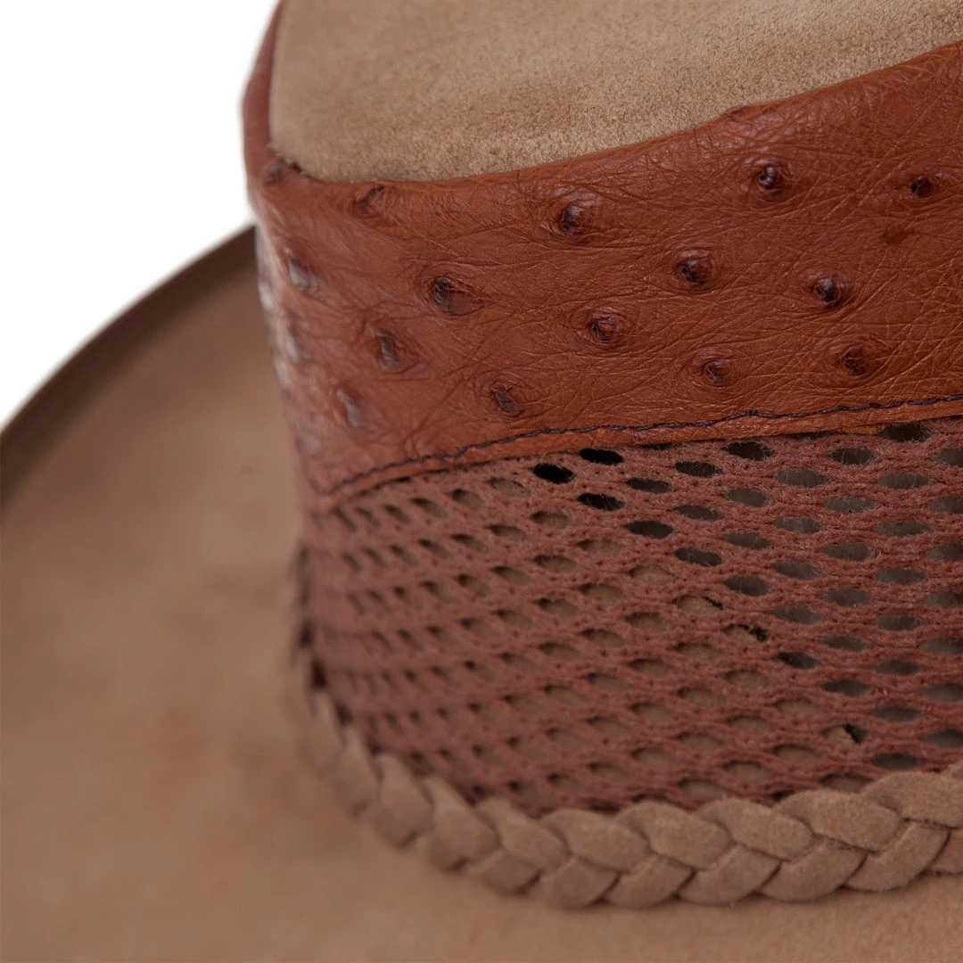 Introducing the Suede Hat with Genuine Ostrich – Braid and Ventilation – Cognac, a sophisticated and versatile accessory that combines premium materials with functional design. Crafted from high-quality suede in a rich cognac shade and accented with genuine ostrich leather, this unisex hat is a testament to South African craftsmanship. Featuring 100% cotton ventilation, it’s perfect for outdoor adventures or making a bold fashion statement.